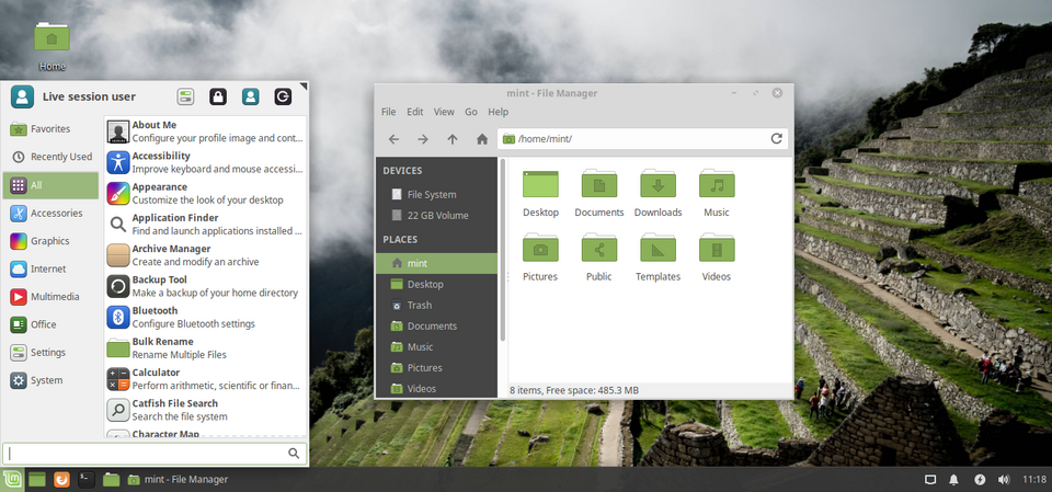 The LM button to the far left of the taskbar is in the same spot as the Start menu on Windows. The interface is overall intuitive, and it’s easy to navigate. Linux Mint has excellent documentation to support new users. The documentation explains how to download the iso file and create a bootable image and has a very complete installation guide.