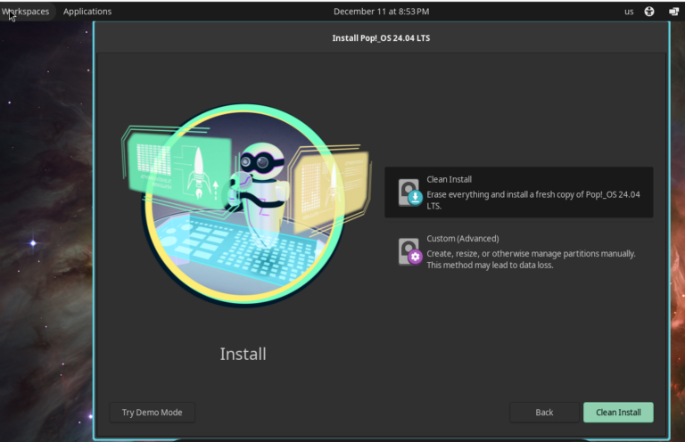 Today, I received an email announcing the release of COSMIC as Pop!_OS. I was excited to download it and try it out on a spare laptop that has an i7 processor and 16 GB of RAM. I downloaded the ISO file, created a bootable drive, and started the installation process. As usual, it was extremely easy and well-designed. The installation proceeded just like previous Pop!_OS installations.